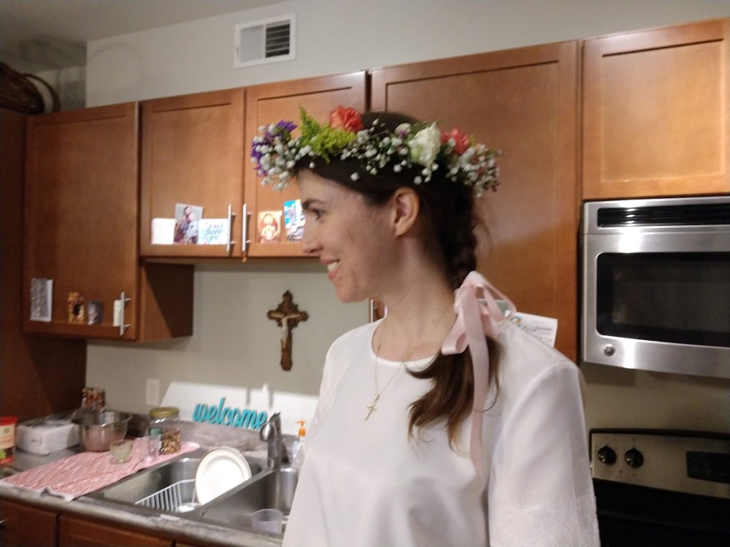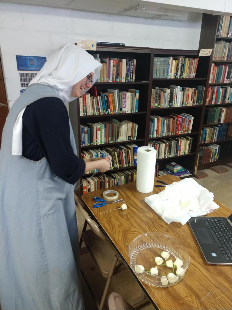 Then a sister showed me how to make a crown for my older sister’s first vows: