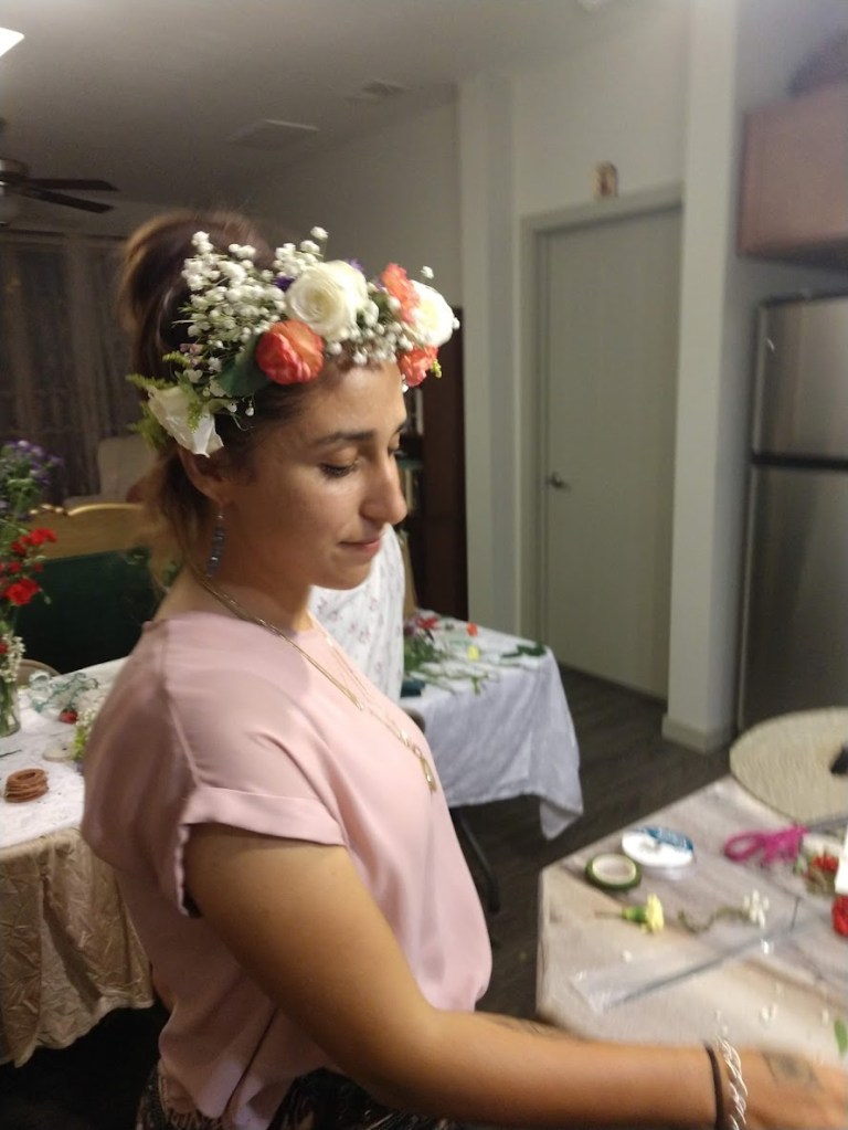 We now have a flower crown party every year to make our crowns prior to the procession!